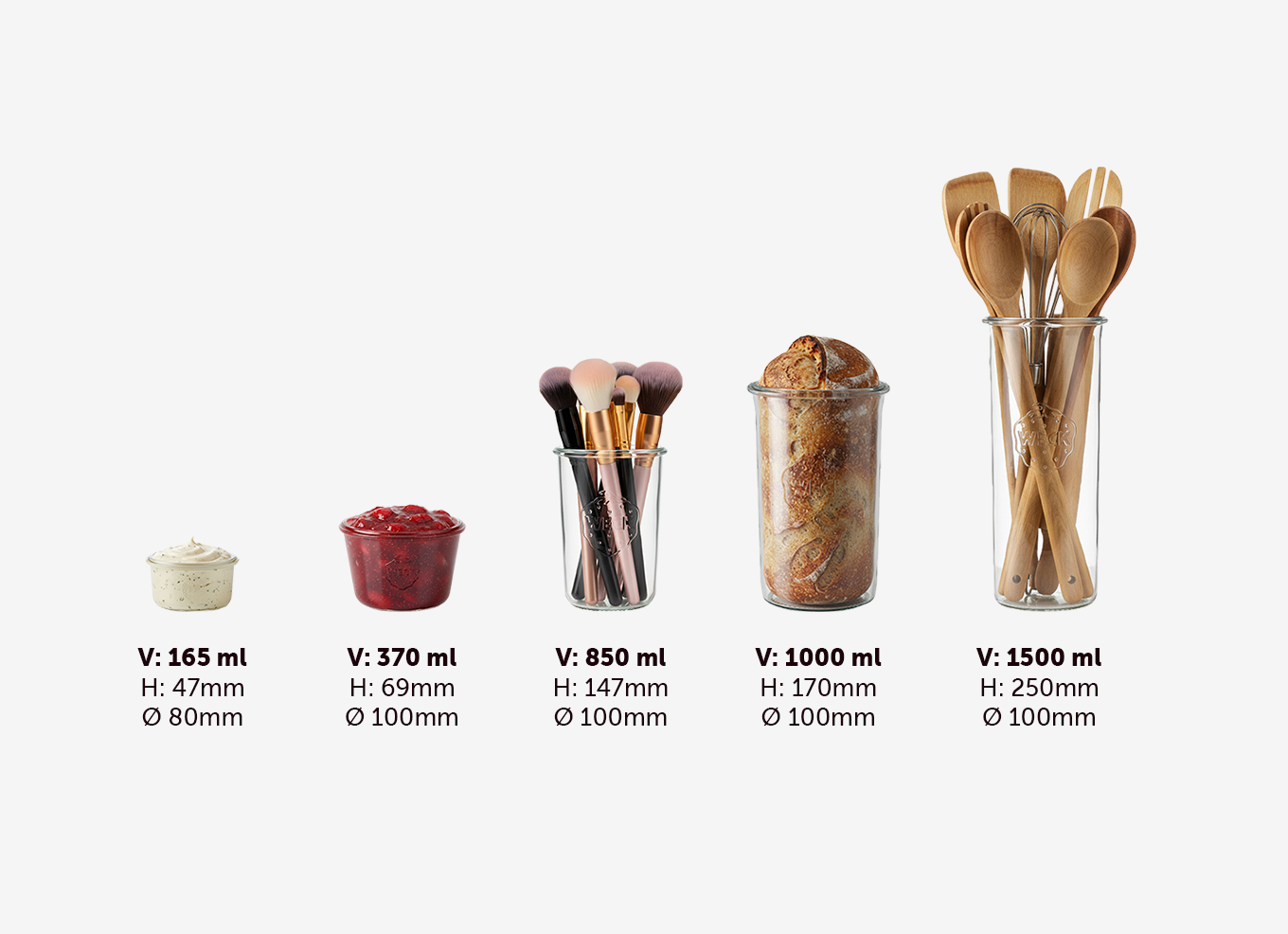 Ob kleine Portionen oder große Vorräte – die WECK Sturzgläser gibt es in vielen Größen. Vergleiche die Varianten direkt und entdecke, welches Glas perfekt zu deinem Rezept oder Vorrat passt.