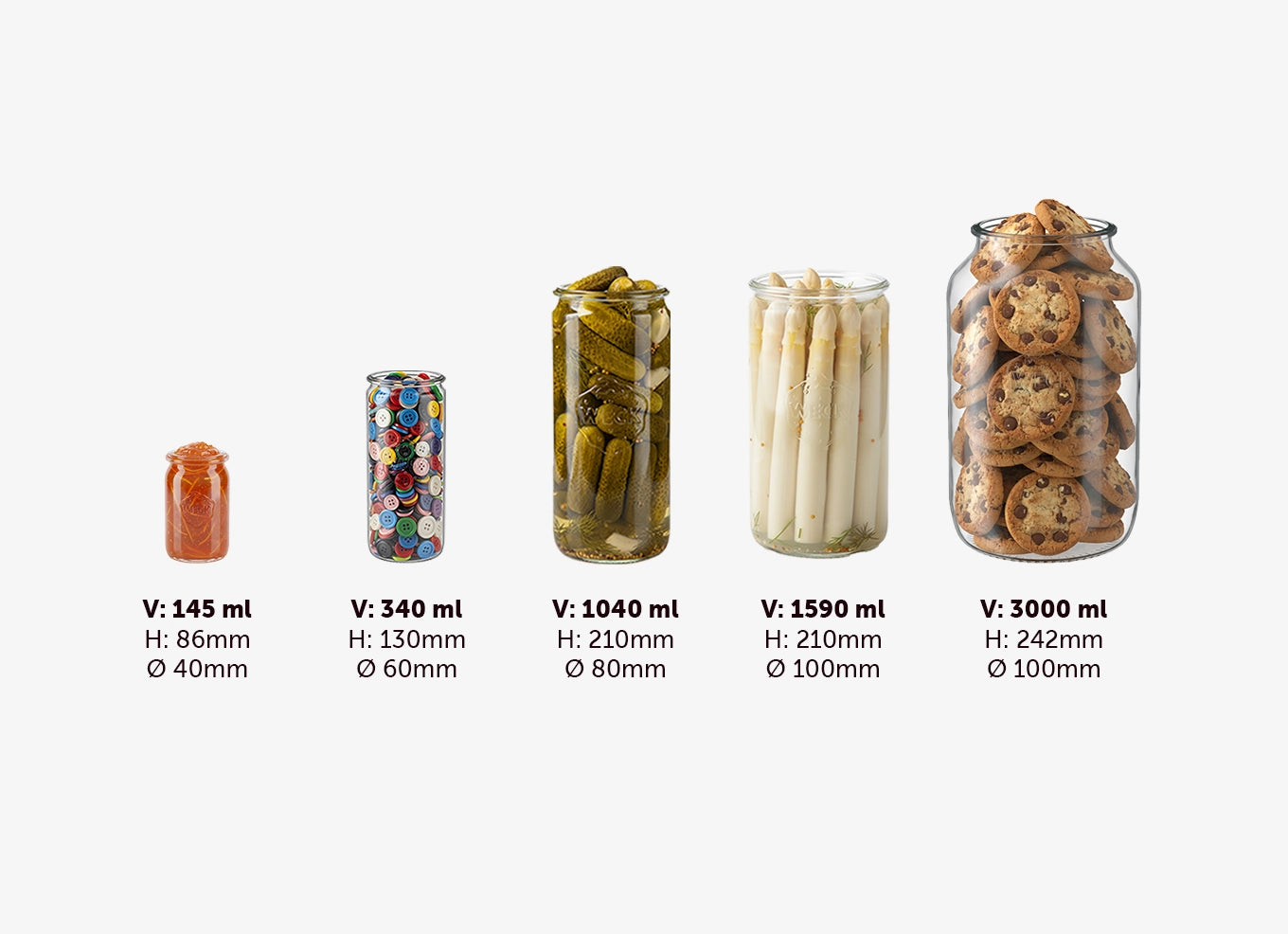 Ob kleine Portionen oder große Vorräte – die WECK Zylindergläser gibt es in vielen Größen. Vergleiche die Varianten direkt und entdecke, welches Glas perfekt zu deinem Rezept oder Vorrat passt.