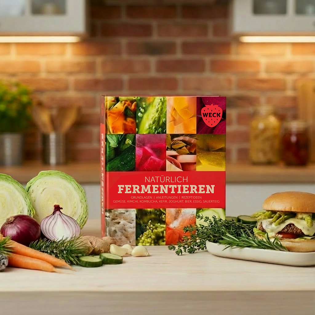 280 Seiten, über 70 Rezepte und eine große Leidenschaft: Fermentieren lernen, verstehen und genießen! Dieses Buch ist prall gefüllt mit Fachwissen und Schritt-für-Schritt-Anleitungen. Gedruckt auf hochwertigem Recycling-Papier, mit drei Lesebändern, Notizseiten, Saisonkalender und alphabetischer Rezeptübersicht.